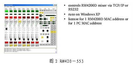 RM4200D數(shù)字調(diào)音臺是德國DHD公司的第三代產(chǎn)品,是針對數(shù)字化、網(wǎng)絡(luò)化的發(fā)展要求而研發(fā)的產(chǎn)品。其設(shè)計(jì)原理是:硬件系統(tǒng)僅僅是為軟件系統(tǒng)提供一個穩(wěn)定而強(qiáng)大的工作平臺,它將實(shí)現(xiàn)軟件所特定的全部功能。