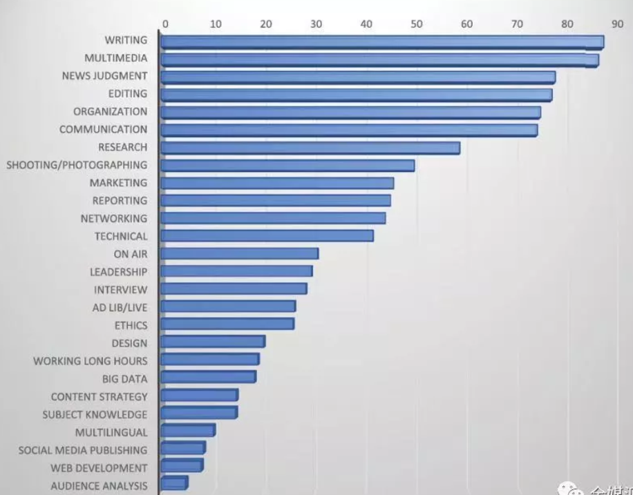 圖為:招聘廣告中提及的新聞職業(yè)技能的百分比