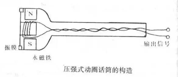 在話筒的振膜上粘有線圈 , 線圈放在磁鐵的兩極之間。當(dāng)把話筒放在聲場(chǎng)中時(shí),振膜隨著聲波振動(dòng) , 線圈即在兩磁極間運(yùn)動(dòng)切割磁力線 , 從而把聲波轉(zhuǎn)變成微小的電流 , 再經(jīng)過(guò)變壓器向放大器或調(diào)音臺(tái)輸出。