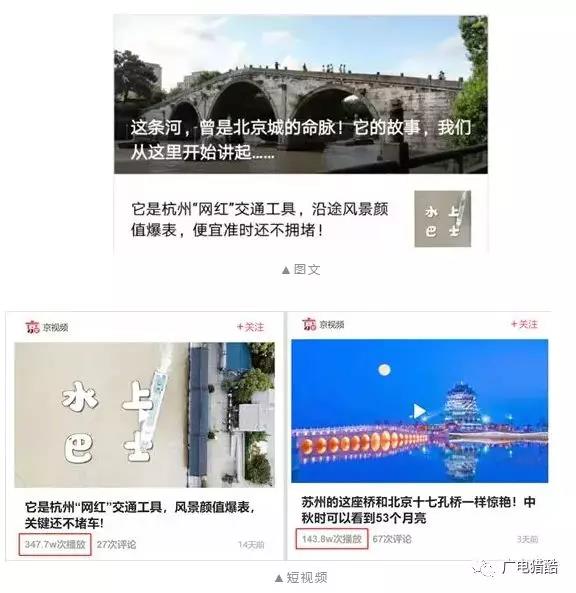 同時(shí),新媒體作品也是異彩紛呈。制作出以“大運(yùn)河”為主題的手繪H5產(chǎn)品,讓用戶模擬游覽大運(yùn)河,虛擬體驗(yàn)兩岸秀美風(fēng)光;系列短視頻報(bào)道《愛上大運(yùn)河之遇見城市的美》聯(lián)動(dòng)電視專題播發(fā),10集短視頻報(bào)道語態(tài)輕松,從另一視角展現(xiàn)大運(yùn)河沿線城市之美,播放量累計(jì)高達(dá)1119萬。各省市融媒體中心在微博共同推出“愛上大運(yùn)河”微博專屬話題,截至9月18日,微博話題累計(jì)閱讀量達(dá)1657萬,相關(guān)視頻累計(jì)播放量近4000萬,形成了融媒體規(guī)模效應(yīng)。