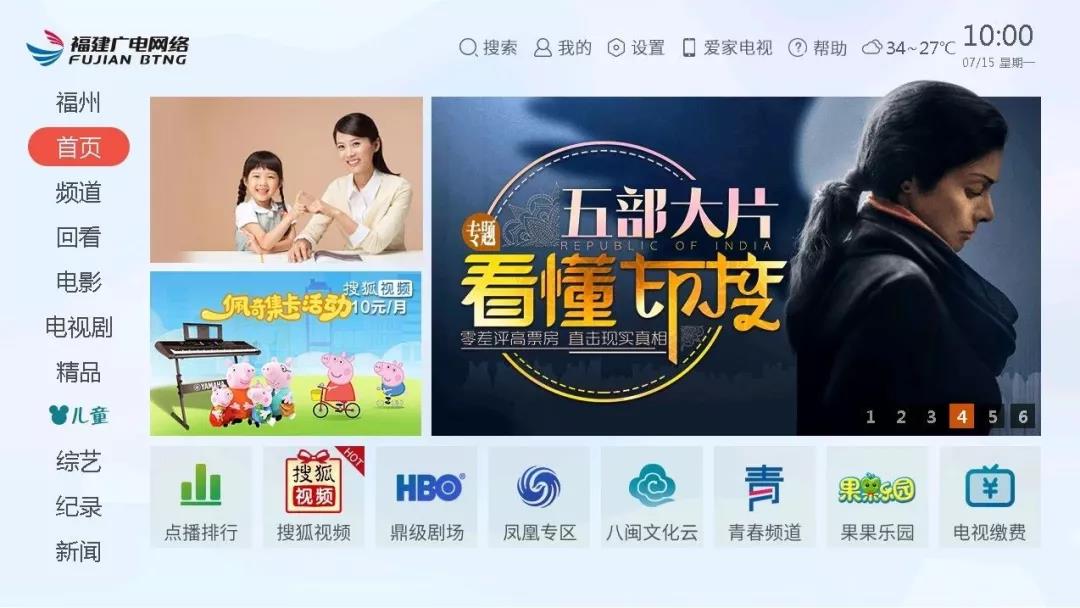 自2014年5月福建高清互動電視云平臺上線以來,歷經(jīng)多次升級優(yōu)化,四次迭代界面UI,每一次升級都給用戶帶來新層次的體驗,互動平臺活躍度居全國同行前列。平臺節(jié)目和應(yīng)用日趨豐富,高、標(biāo)清直播頻道多達(dá)200套,獨家傳輸央視4K超高清節(jié)目,提供92個頻道節(jié)目10天內(nèi)回看,電影院線、熱播劇、精品少兒、戲劇方言、黃岡名師課,以及卡拉OK、QQ音樂、電競游戲等內(nèi)容,讓用戶不僅可以看電視、用電視,還可以“玩”電視。平臺還聚合了優(yōu)酷、愛奇藝、騰訊三大視頻網(wǎng)站資源,讓喜歡追網(wǎng)劇的用戶擺脫手機(jī)、pad的小屏限制,享受大屏帶來的優(yōu)質(zhì)視聽感受。