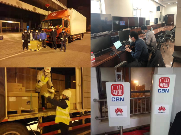 一是“急速72小時(shí)”推進(jìn),在湖北武漢新聞發(fā)布會(huì)現(xiàn)場(chǎng)實(shí)戰(zhàn)應(yīng)用700MHz+4.9GHz中國廣電5G,在武漢雷神山醫(yī)院完成中國廣電5G基站安裝調(diào)試,免費(fèi)為醫(yī)院工作人員及隔離區(qū)病人提供公共Wi-Fi服務(wù)。按照國家廣電總局的工作要求,中國廣電迅速行動(dòng)、連夜作戰(zhàn),在湖北省委宣傳部、湖北省通信管理局的協(xié)助下,聯(lián)合湖北廣播電視臺(tái)、湖北廣電網(wǎng)絡(luò)公司、華為公司等,圍繞服務(wù)抗疫的共同目標(biāo),迅速行動(dòng),協(xié)同作戰(zhàn),在全民防疫、交通管制的特殊時(shí)期,緊急協(xié)調(diào)設(shè)備連夜從北京專車發(fā)往武漢,迅速開始安裝和核心網(wǎng)聯(lián)調(diào)優(yōu)化。自1月29日晚項(xiàng)目建設(shè)啟動(dòng),快速完成施工審批、1200公里長途運(yùn)輸、網(wǎng)絡(luò)規(guī)劃、站點(diǎn)勘測(cè)、站點(diǎn)環(huán)境準(zhǔn)備、中國有線和湖北廣電傳輸鏈路打通、基站安裝、核心網(wǎng)聯(lián)調(diào)、網(wǎng)絡(luò)優(yōu)化和業(yè)務(wù)調(diào)測(cè)等眾多環(huán)節(jié),創(chuàng)造了從北京5G核心網(wǎng)聯(lián)調(diào)到武漢基站開通僅用72小時(shí)的神奇速度。中國廣電5G基站在新聞發(fā)布會(huì)現(xiàn)場(chǎng)投入實(shí)戰(zhàn)應(yīng)用,完成雷神山醫(yī)院中國廣電5G基站安裝調(diào)試,免費(fèi)為醫(yī)院建設(shè)者、醫(yī)護(hù)人員及隔離區(qū)病人提供公共Wi-Fi服務(wù)。廣電5G在武漢疫區(qū)的開通發(fā)揮積極作用,得到湖北省委的高度肯定。