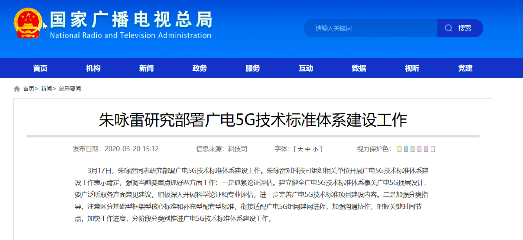 常話短說小編前幾天寫了篇關(guān)于2020年這個時間點,把曾經(jīng)的過往文件都進行梳理,也一起回顧了數(shù)字化整體轉(zhuǎn)換的那個“光輝歲月”...而如今5G的大潮來了,對于廣電來說,還是要立足本職,干好眼前的事情,比如5G標(biāo)準(zhǔn)建設(shè)、700MHz進行頻率調(diào)整拿到批文等等~~