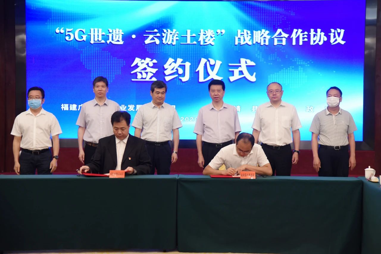 簽約儀式上,福建廣電網(wǎng)絡實業(yè)發(fā)展有限公司總經(jīng)理程勇與南靖縣副縣長邵華凱代表雙方在“5G世遺·云游土樓”戰(zhàn)略合作協(xié)議上簽字。