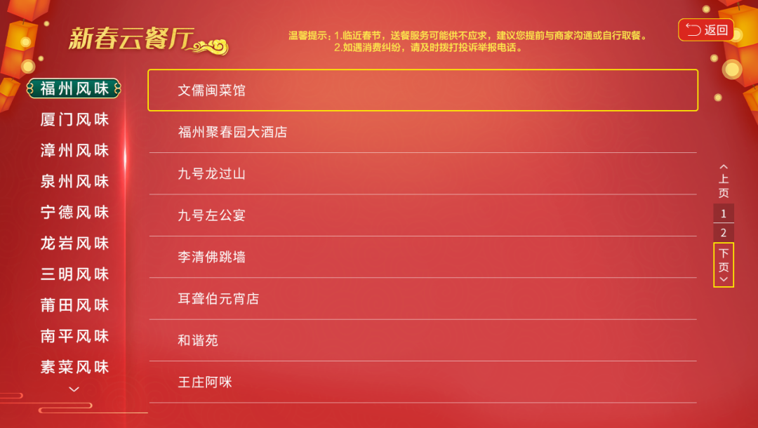 閩菜專區(qū)首次推出“新春云餐廳”專欄,涵蓋十多個地方風味,集結百余家企業(yè)提供“線上訂餐,無接觸配送”服務。佛跳墻、白斬河田雞、八寶鱘飯、閩南炒面線……打開所選擇的餐飲企業(yè)頁面,可以看到各色美食,只要手機掃碼下單或撥打訂餐電話,送餐企業(yè)就能按照無接觸配送要求,規(guī)范全過程防疫管理,將心動菜品直送到家!