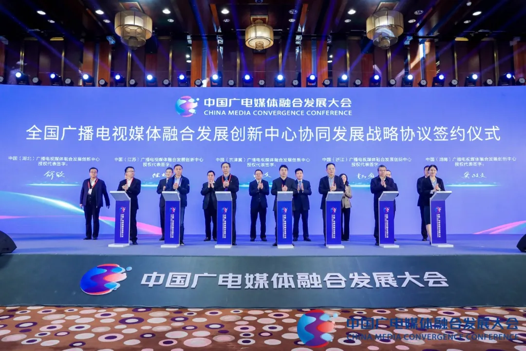 啟動式上,京津冀、江蘇、浙江、湖北、湖南、陜西、蘇州七家全國廣播電視媒體融合發(fā)展創(chuàng)新中心共同簽署戰(zhàn)略合作協(xié)議。各方約定將共同推動資源協(xié)同,開展主題宣傳合作;共同推動技術創(chuàng)新,開展技術研究應用合作;共同推動產業(yè)協(xié)作,開展商務運營合作;共同推動人才建設,開展人才教育培養(yǎng)合作;共同建立交流合作機制,合力推進全國廣播電視媒體深度融合發(fā)展。