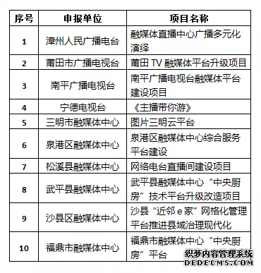 福建省廣播電視媒體融合發(fā)展專(zhuān)項(xiàng)扶持項(xiàng)目名單