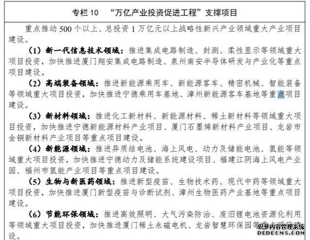 《規(guī)劃》提到,到2025年,福建省戰(zhàn)略性新興產(chǎn)業(yè)規(guī)模與創(chuàng)新能力邁上新臺(tái)階,取得一批重大標(biāo)志性成果,培育一批具有全球影響力的龍頭企業(yè),打造創(chuàng)新引領(lǐng)、結(jié)構(gòu)優(yōu)化的生態(tài)體系,穩(wěn)步提升在全球產(chǎn)業(yè)鏈、價(jià)值鏈中的地位,培育一批特色鮮明、優(yōu)勢(shì)互補(bǔ)、結(jié)構(gòu)合理的戰(zhàn)略 性新興產(chǎn)業(yè)集群。
