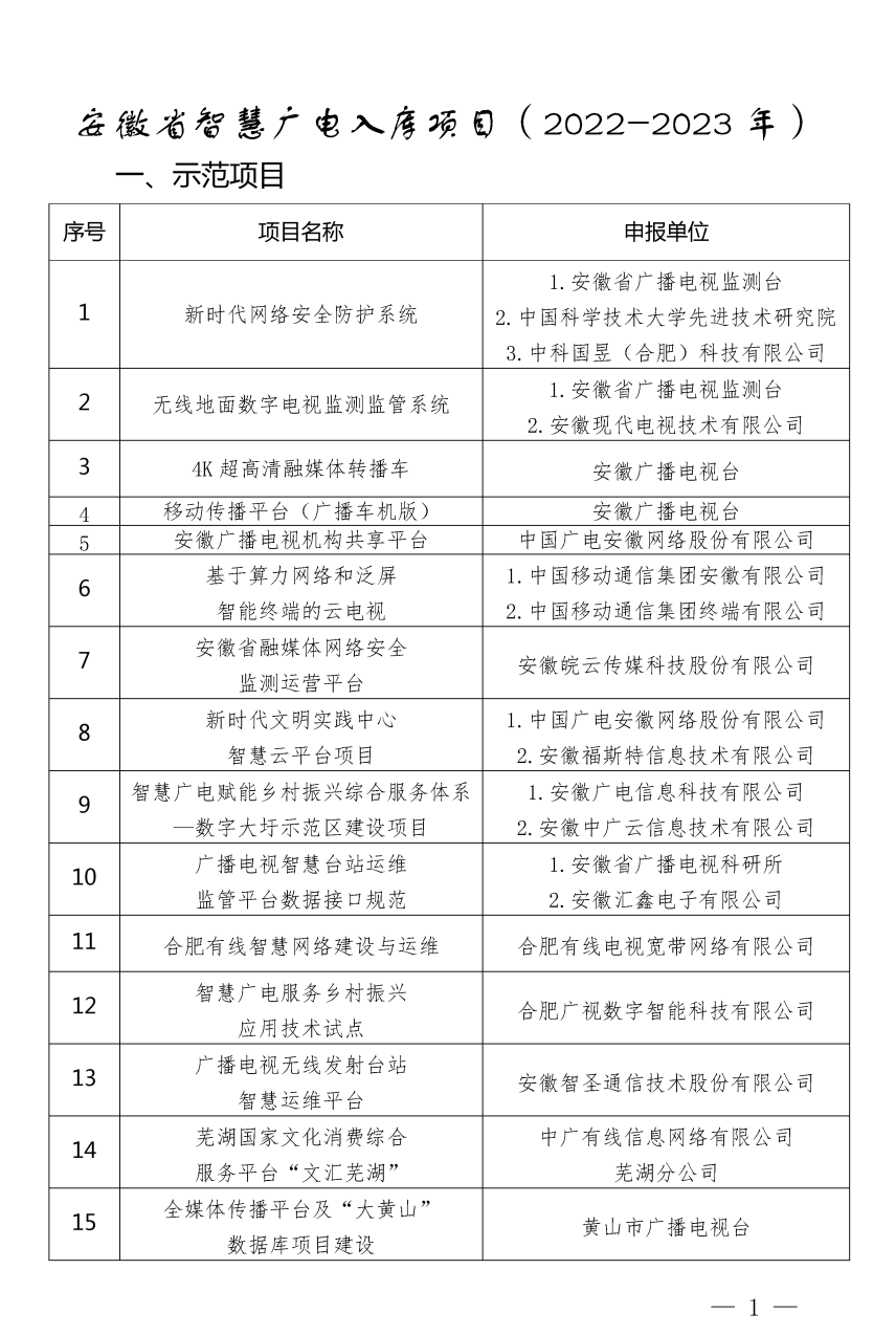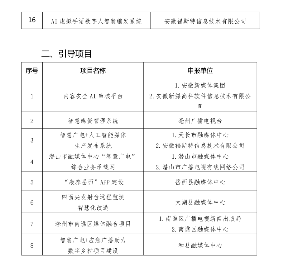 安徽省智慧廣電項(xiàng)目庫(2022-2023年)公布,中國廣電安徽公司多個(gè)項(xiàng)目入選