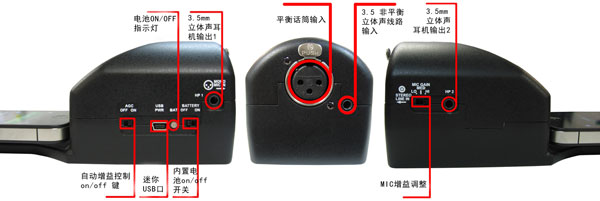 3)插入話筒,戴上耳機, 就可以在線傳輸15K 音頻信號; 或者通過iphone觸摸屏操作按鍵錄音;用FTP傳輸錄音信號。