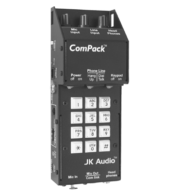 這款設(shè)備可以為無線電話、PBX電話系統(tǒng)和普通的模擬電話線路提供音頻連接,適用于遠(yuǎn)程廣播、IFB傳輸和各種電話采訪。無線電話:只需將ComPack插入無線電話的2.5mm的耳機(jī)接 口。你的電話會(huì)將ComPack識(shí)別為一個(gè)聽筒,同時(shí)電話上的話筒和揚(yáng)聲器將不起作用。 PBX系統(tǒng):將模擬或數(shù)字PBX電話的聽筒拔下,插上 ComPack。你可以通過PBX電話設(shè)備發(fā)送和接收音頻。 模擬電話:將ComPack插在RJ 11接口上,摘機(jī)撥號(hào)或接聽 來電。