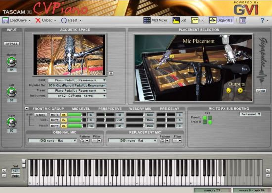 GVI是Giga Virtual Instrument的簡稱,也就是插件版的GigaStudio。而CVPiano則是Continuous Velocity Piano(持續(xù)力度鋼琴)的簡稱,一個用GVI做外殼的插件,利用GVI的采樣引擎的鋼琴插件,支持VSTi和RTAS格式,當(dāng)然你也可以獨立運(yùn)行CVPiano,但你沒可能用CVPiano去加載其它GVI音色或是Giga音色,因為它只能回放。