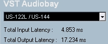 US系列把ASIO緩沖分為5個級別:最低、比較低、一般、比較高和最高(如圖11),在最低緩沖時輸入/輸出延遲如圖12。換為一般緩沖后延遲如圖13。