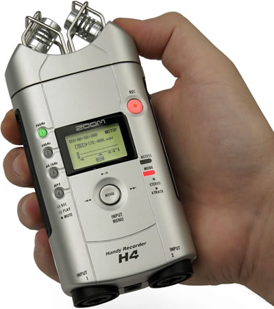 ZOOM一直以高品質(zhì)低價(jià)格的效果器著稱于世,最近ZOOM推出了以SD儲(chǔ)存卡為保存介質(zhì)的錄音機(jī)“Handy Recorder”H4。它不僅可以保持24bit/96kHz的高保真錄音效果,還可以進(jìn)行和CD同樣音質(zhì)的16bit/44.1kHz的4軌錄音。它的內(nèi)部不僅帶有校音器,而且還帶有音色效果器,可以為樂隊(duì)錄制樣帶。在擁有多種功能的同時(shí),它的操作非常簡(jiǎn)便,利用高質(zhì)量的麥克風(fēng)還可以作為錄音筆使用。它可以勝任很多環(huán)境的音頻采集工作,請(qǐng)看精彩圖片,夠酷吧。