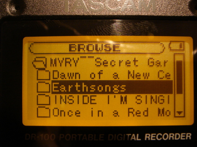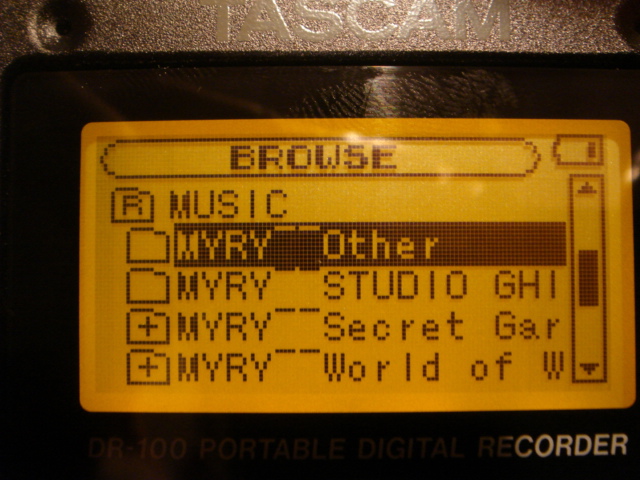 DR-100可以通過(guò)菜單瀏覽根目錄/自定義文件夾/子文件夾內(nèi)的文件,可以通過(guò)滾輪快速選擇文件夾或者歌曲,速度取決于你的APM,這一點(diǎn)很人性化,和ipod的滾輪類似,比D50一下下按快進(jìn)快退那是方便很多了。