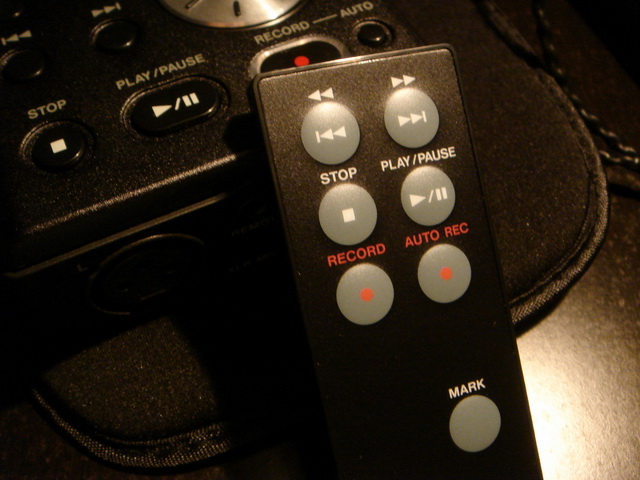 DR-100附帶的無(wú)線遙控更是一大優(yōu)勢(shì),值得著重一提。這個(gè)小巧的遙控可以控制播放\暫停、停止、前后選曲\快進(jìn)后退、錄音、分曲,涵蓋了最常用的功能,你可以把DR-100放在包里,用遙控來(lái)控制常規(guī)回放,在公車,地鐵里也不必在意別人異樣的眼光,做到足夠低調(diào)。而且這個(gè)無(wú)線遙控可以通過(guò)附帶的線控適配器,從無(wú)線變?yōu)橛芯€控制,適應(yīng)不同的使用場(chǎng)合。就我自己的使用經(jīng)驗(yàn)而言,這個(gè)無(wú)線遙控在3m內(nèi)對(duì)機(jī)器遙控沒(méi)有問(wèn)題,只需將遙控對(duì)準(zhǔn)機(jī)器頂部的接收器位置即可。從此不用頻繁的將磚頭拿在手上選歌了,這個(gè)遙控非常有實(shí)用價(jià)值。SONY為D50配的遙控不光是線控不說(shuō),功能少,售價(jià)還要2百多元,真是坑爹。。