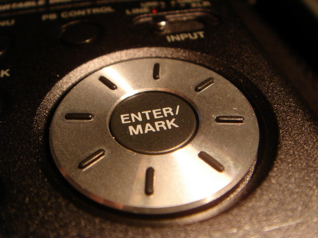 相信第一眼看到DR-100的面板,都會(huì)注意到那個(gè)顯眼的銀色圓形轉(zhuǎn)輪,這個(gè)轉(zhuǎn)輪是TASCAM一系列機(jī)器上的一大特色,大多數(shù)功能都可以用過(guò)這個(gè)轉(zhuǎn)輪和中間的按鈕實(shí)現(xiàn)操作,特別是在選擇文件夾、曲目、播放速度時(shí),這個(gè)轉(zhuǎn)輪有著無(wú)可取代的作用。鋁合金車制而成,上面嵌鑲著塑料防滑條,很精致,很實(shí)用。個(gè)人實(shí)用下來(lái),要說(shuō)有什么不足,就是阻尼感差一些,不夠圓滑,中間的圓形按鈕對(duì)比其他按鍵,手感較松,按鍵感較差。這個(gè)轉(zhuǎn)輪有24個(gè)刻度,撥動(dòng)一個(gè)刻度就可以快進(jìn)或者倒退1秒,方便對(duì)文件進(jìn)行精確定位。