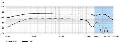超心形話筒 MKH 8050 對于軸外的聲音給予更大的衰減,相對心形話筒而言。它是對獨(dú)唱者/獨(dú)奏者錄音的好選擇,因?yàn)檫@些要求很高的聲音分離。