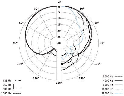 心形話筒 MKH 8040 適合幾乎任何應用。它能明顯的削減對房間回聲的拾取。這對于在一個建聲條件很差的房間內(nèi)錄音很有幫助,因為干擾聲音主要從后面過來。