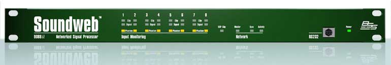 Soundweb 的 9088iis 數(shù)字信號處理單元是 Soundweb 系統(tǒng)的核心。作為一個獨(dú)立的1U機(jī)架空間設(shè)設(shè)備,Soundweb 9088iis 配置了完善的 8 信道輸入、8 信道輸出和 1 個高性能 DSP 處理器,網(wǎng)絡(luò)連接和其它 Soundweb 設(shè)備的信號分配,模塊的 GPI 控制接口的 RS232 接口,可用于連接 PC 或 AMX/Crestron 等外部控制設(shè)備。