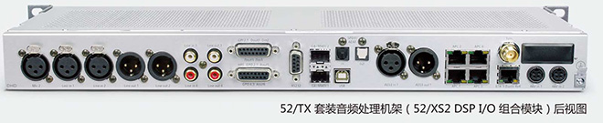 52/TX 可以與所有 DHD 的 DSP 核心和 I/O 模塊組合構(gòu)成調(diào)音臺(tái)系統(tǒng)。現(xiàn)在 DHD 公司推薦一款 52/TX 的組合配置方案。以這個(gè)配置套裝采購(gòu) 52/TX 可