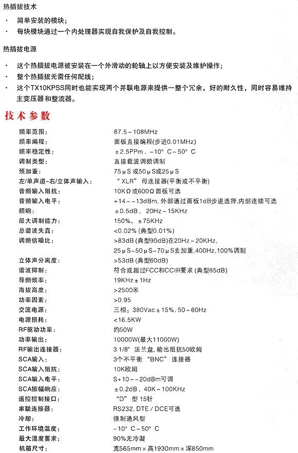 產(chǎn)品簡(jiǎn)介:TX10KPSS 10KW 熱插拔調(diào)頻發(fā)射機(jī)