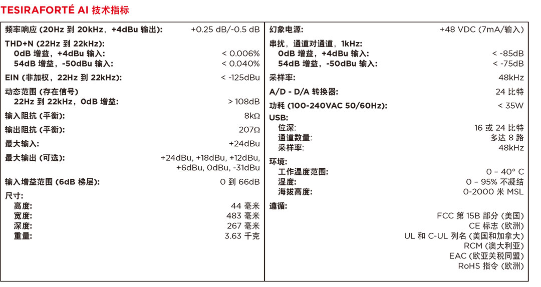 TesiraFORTé? AI是一款固定的I/O DSP,配備12路模擬輸入和8路模擬輸出,并包含多達(dá)8路可配置USB音頻通道。借助USB音頻,TesiraFORTé直接與USB音頻主機(jī)連接,并可充分利用當(dāng)今最先進(jìn)的會(huì)議解決方案。TesiraFORTéAI還提供了廣泛的音頻處理,包括但不限于:信號(hào)路由和混音、均衡、濾波、動(dòng)態(tài)和延遲以及控制、監(jiān)控和診斷工具,均通過(guò)Tesira軟件配置。TesiraFORTé AI是中小型房間的最佳選擇,這類(lèi)房間需要使用語(yǔ)言擴(kuò)聲和分區(qū)擴(kuò)聲的高品質(zhì)音頻解決方案(如會(huì)議室或理事會(huì)會(huì)議廳)。