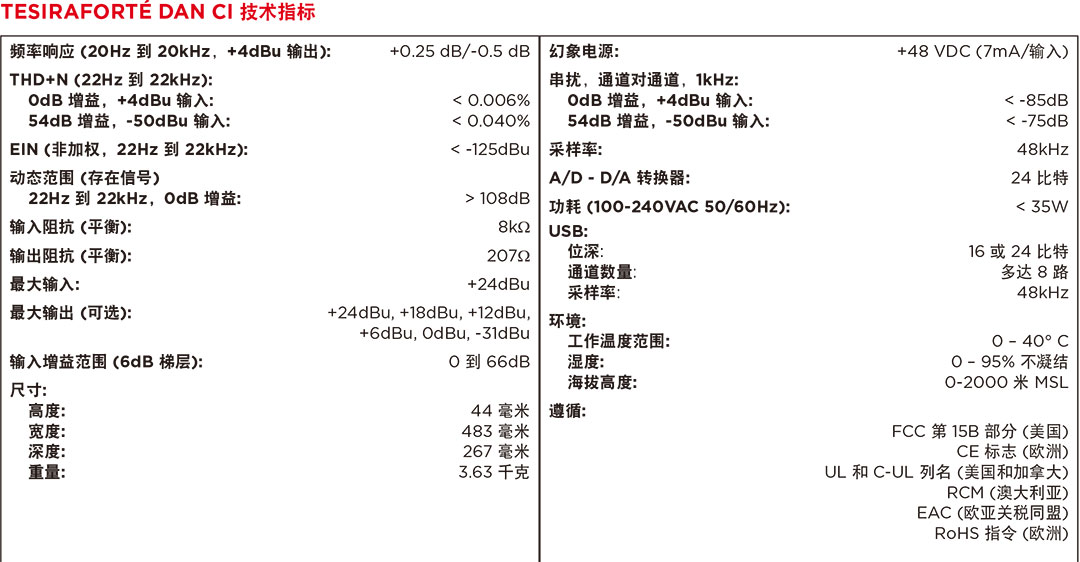 TesiraFORTé? DAN CI是一款固定的I/O DSP,配備32個Dante?數(shù)字音頻雙向通道,12路支持回聲消除(AEC)的模擬輸入和8路模擬輸出,并包含多達(dá)8個可配置的USB音頻通道。借助USB音頻,TesiraFORTé直接與USB音頻主機(jī)連接,并可充分利用當(dāng)今最先進(jìn)的會議解決方案。TesiraFORTé DAN CI還提供了廣泛的音頻處理,包括但不限于:信號路由和混音、均衡、濾波、動態(tài)和延遲以及控制、監(jiān)控和診斷工具,均通過Tesira軟件配置。TesiraFORTé DAN CI是中小型房間的最佳選擇,這類房間需要使用語言擴(kuò)聲和分區(qū)擴(kuò)聲的高品質(zhì)音頻解決方案(如會議室或理事會會議廳)。