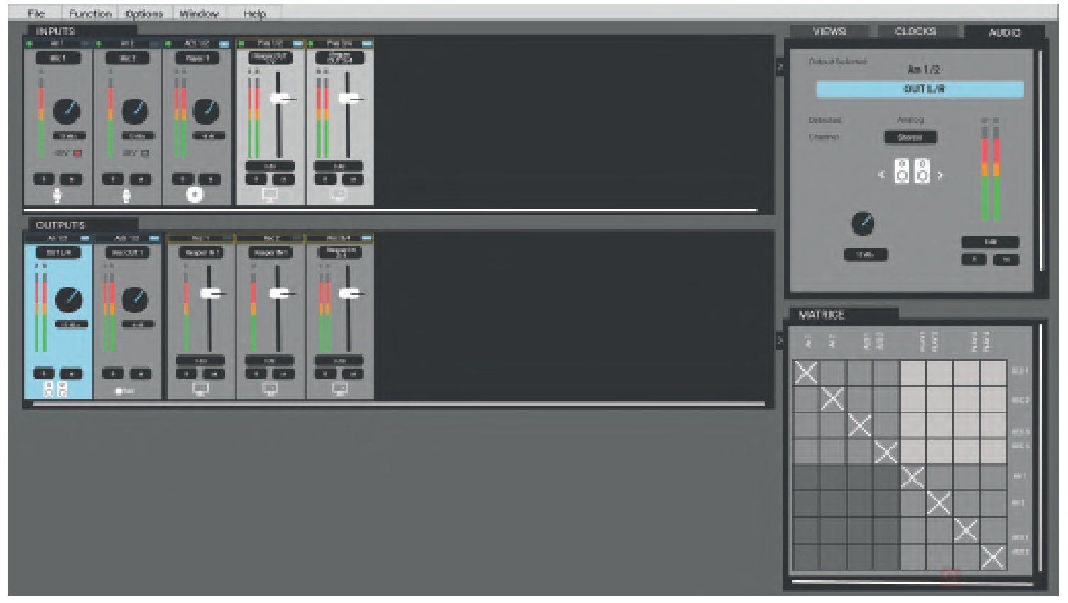 | 主要功能 零延遲板載混音器 硬件監(jiān)控 調(diào)整輸入輸出電平 監(jiān)聽和錄音前的混音 時(shí)鐘和同步選擇 完整的 I/O 矩陣允許將輸入混合到任何輸出 混音器輸入: 模擬輸入、AES3 輸入和 DAW 播放通道 混音器輸出: 模擬輸出、AES3 輸出和 DAW Record 通道 | ||
